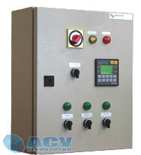 Шкаф управления тремя канализационными насосами ШУНК3-1.1 «профи»ДокументацияОписаниеШкаф управления ШУНК3-1.1 «профи» предназначен для управления трех канализационными насосами с мощностью двигателей 1.1кВт с целью их каскадного включения или отключения в зависимости от сигналов внешних датчиков расположенных в накопительном резервуаре. Регулирование